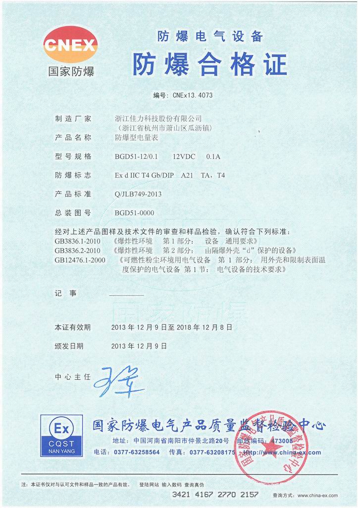 防爆證書>>詳細(xì)信息
