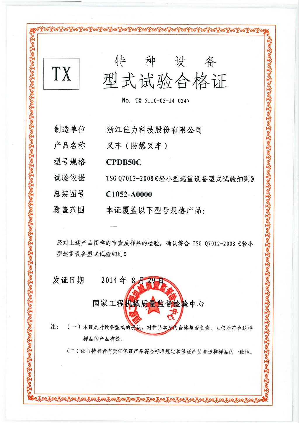 型式試驗(yàn)合格證>>詳細(xì)信息