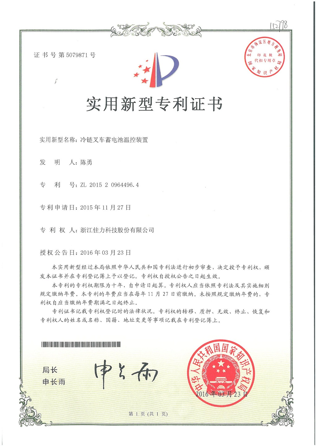 實(shí)用新型 冷鏈叉車蓄電池溫控裝置